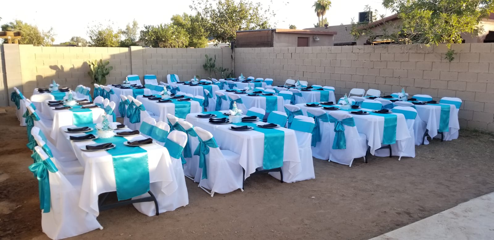 Let’s Celebr8 Rental es una empresa localizada en Phoenix Arizona. Nuestra prioridad es ayudar al cliente a tener un evento exitoso. Ponemos a su disposicion nuestro servicio de renta de mesas y sillas en excelentes condiciones, limpias, sin manchas ni deterioros. Contamos Tambien con manteleria aunque nuestro producto luce tan bien que no lo nesesita, a menos que le guste celebrar con estilo.
