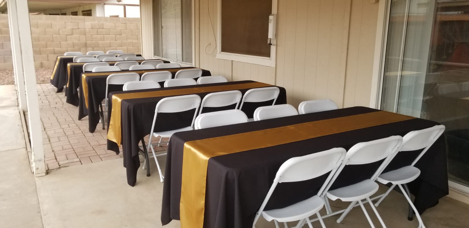 Let’s Celebr8 Rental is a rental company located in Phoenix Arizona. Our #1 priority is to help our customers have a successful event. We take pride in renting newer tables and chairs, that are clean, stain free and are not worn out. We also have linen available. Although our product is so new you don’t need it unless you want to celebr8 in style.
